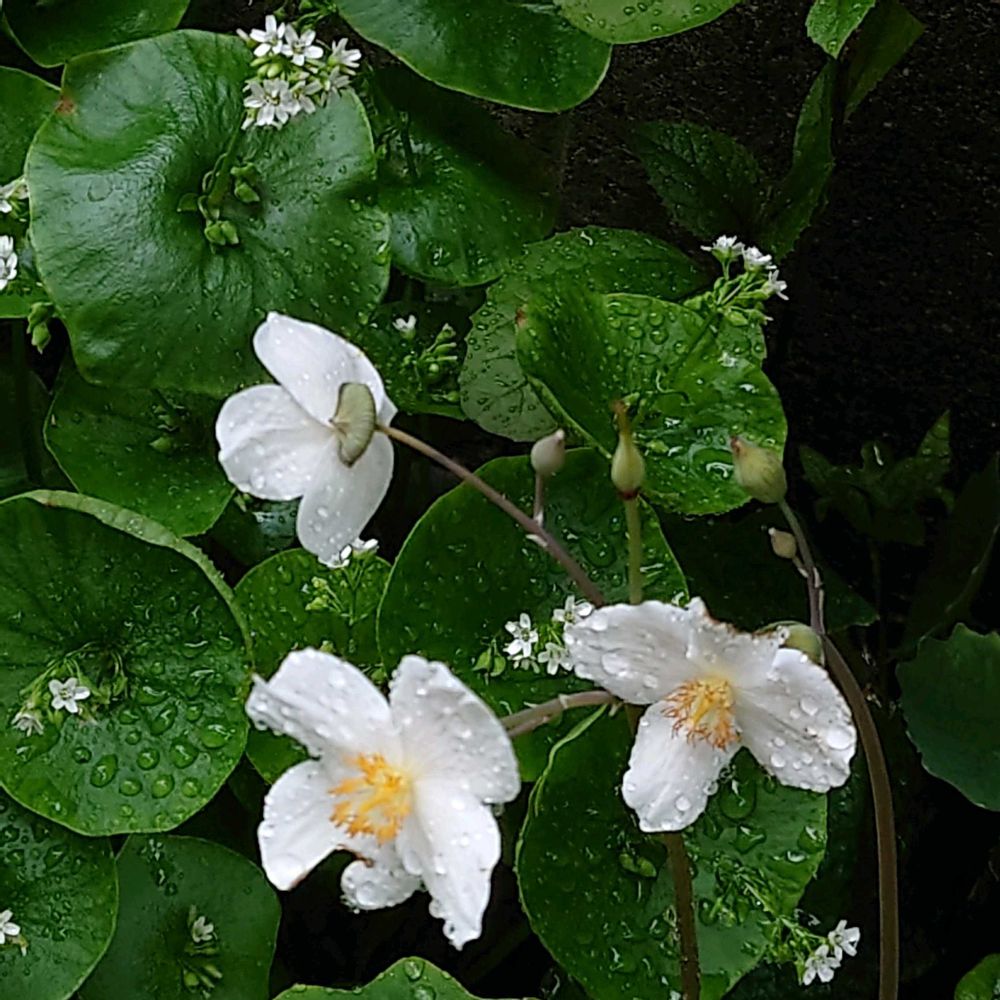 シラユキゲシとツルヌキハコベは裏庭でコラボしながら増えまくってます〜最近この変な長い名前のクレイトニア ペルフォリアータがツルヌキハコベって和名な上に、食べれるのも知ってビックリでした〜私、沢山増えてるんだけど、、、食べる勇気が無いんです〜🤣