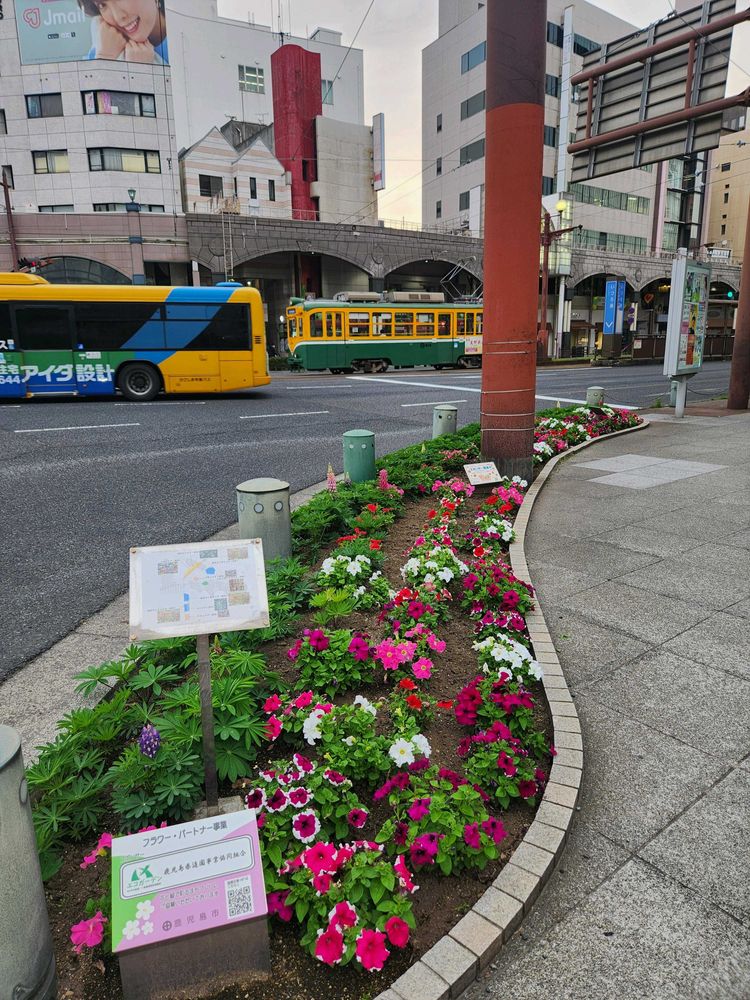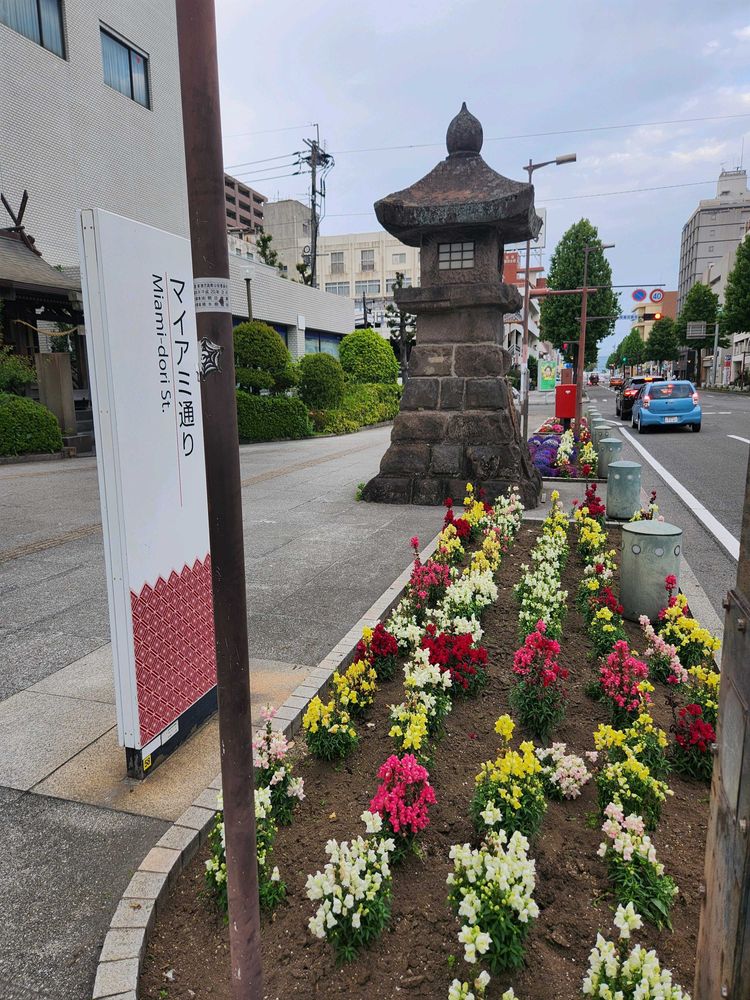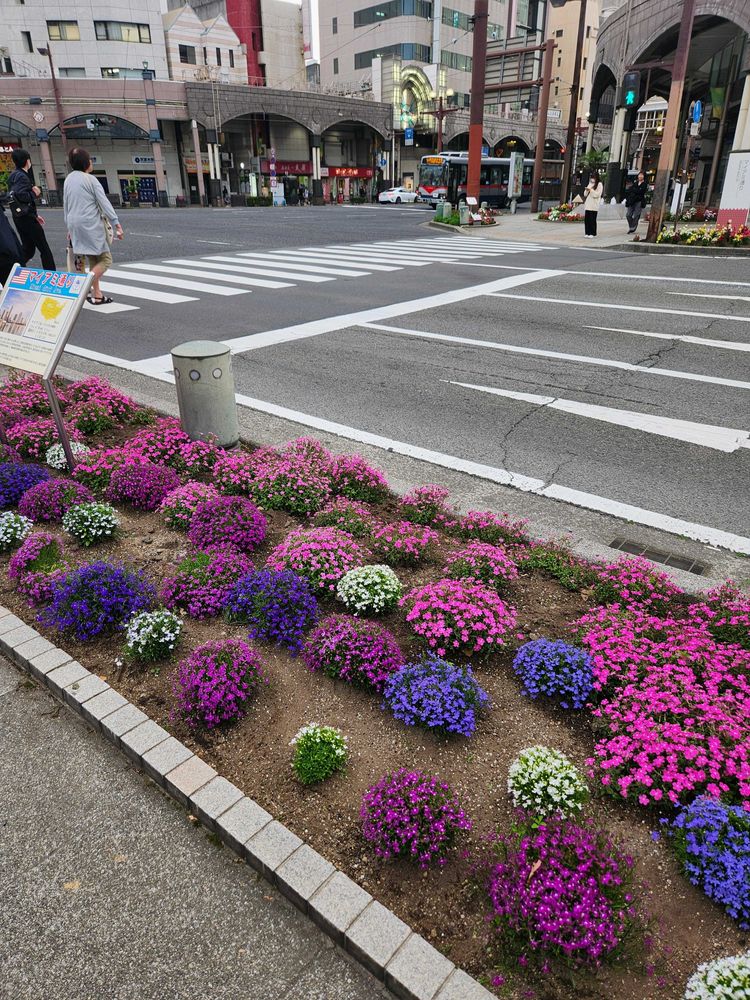 いづろ通交差点回りの花壇、新しい花が綺麗に植えられていました✨️
