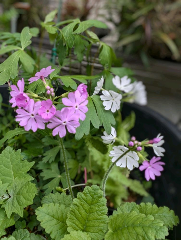 ①ハルジオン②③日本桜草④白サギゴケ⑤ヒマヤラユキノシタ