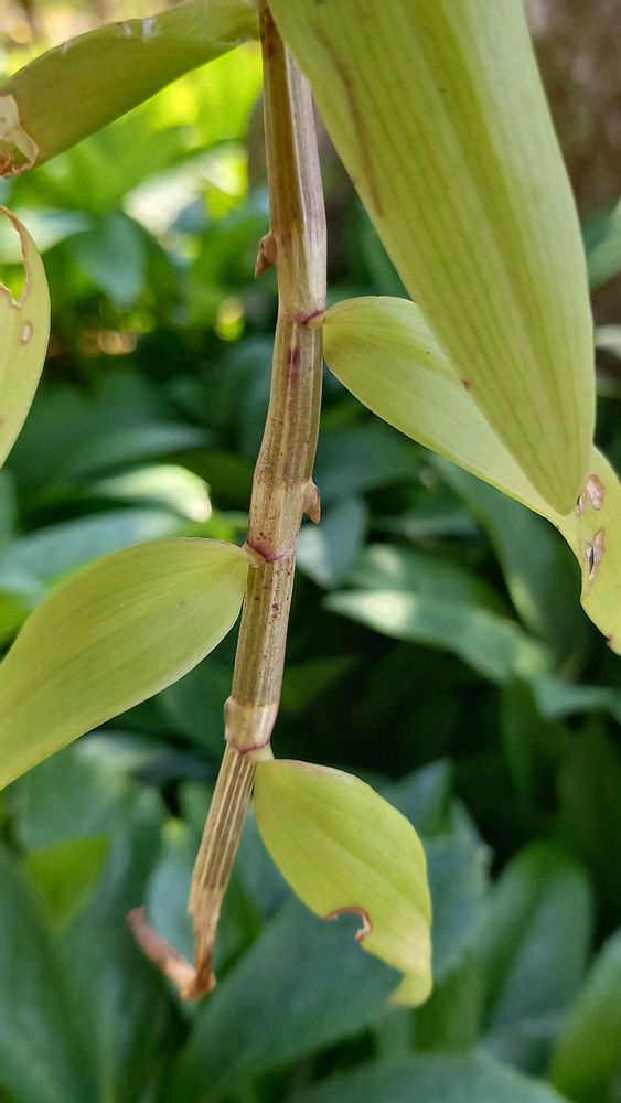 デンドロビウム アフィラム(ピエラルディ)ですか?花芽かな〰️🌸、脇芽になっちゃうかな🥺どっちかな〰️🤍💫💚👀ꉂ🤭