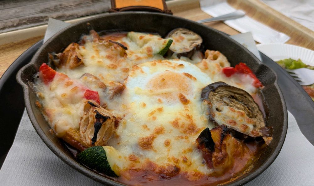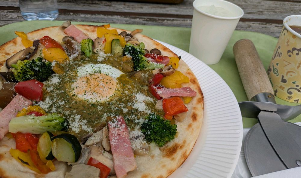 昼食は中央レストランにて沼ピザ、焼きハヤシライスいずれも野菜具だくさん〜