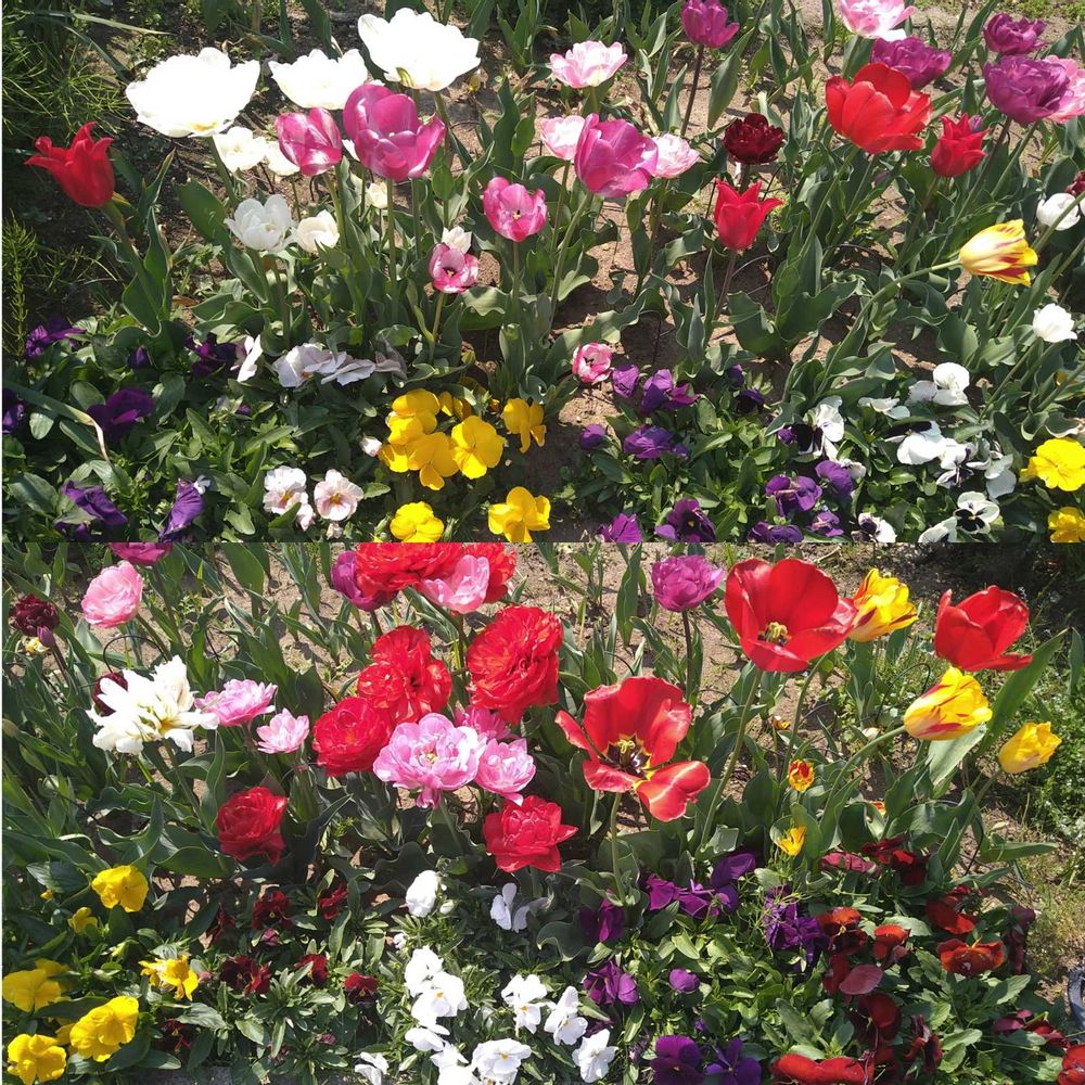 チューリップ専用花壇🌷❤️💜🧡🤍💗💛🌷