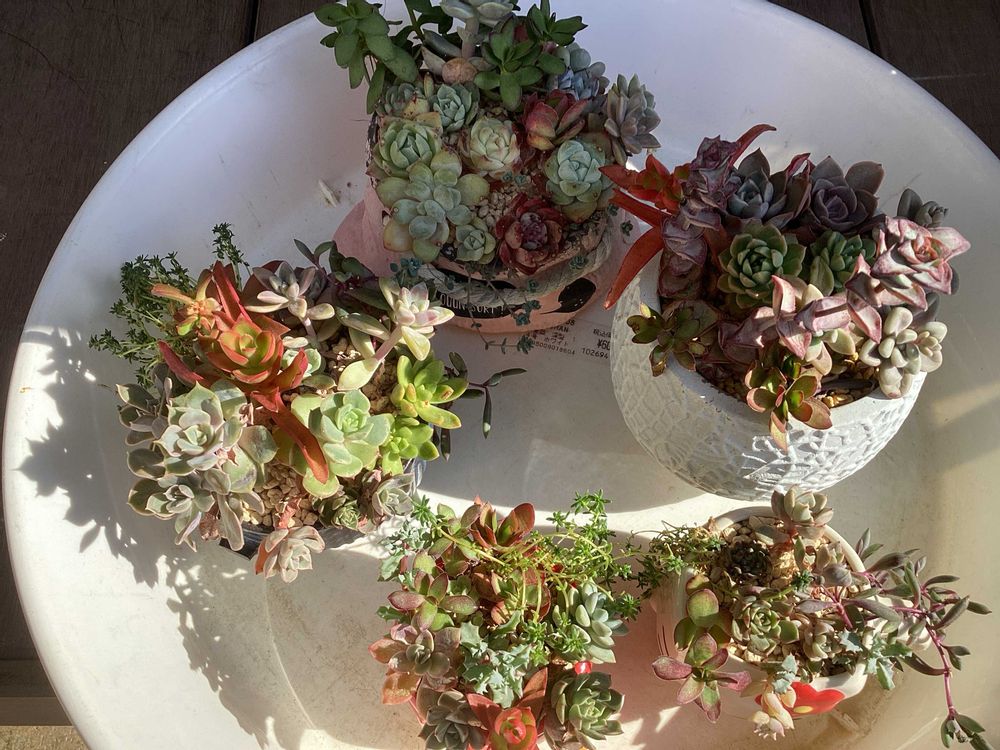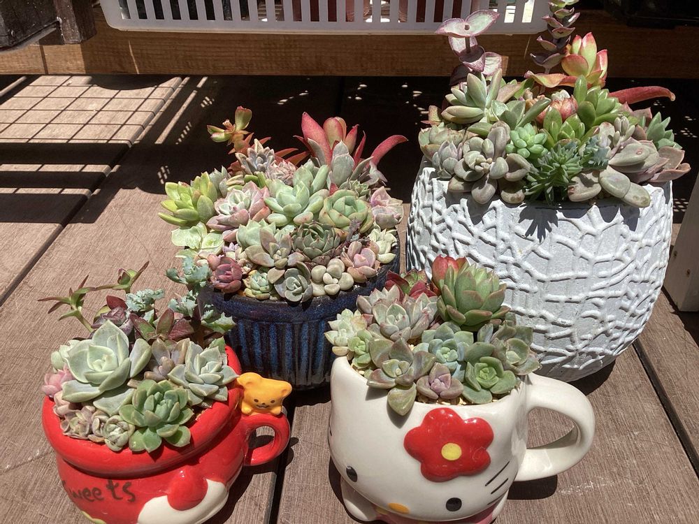 人によっては寄せ植えしてそのままキープ出来る人もいるみたいだけど… ぐでたまはそこまでキープ出来んから…😅💦 お姿が乱れてきたら気になってしまうんよね〜ってコトで仕立て直すんよ〜🤭 仕立て直すといえば聞こえはいいけど、解体した子たちの寄せ集めなんよね〜😅💦
