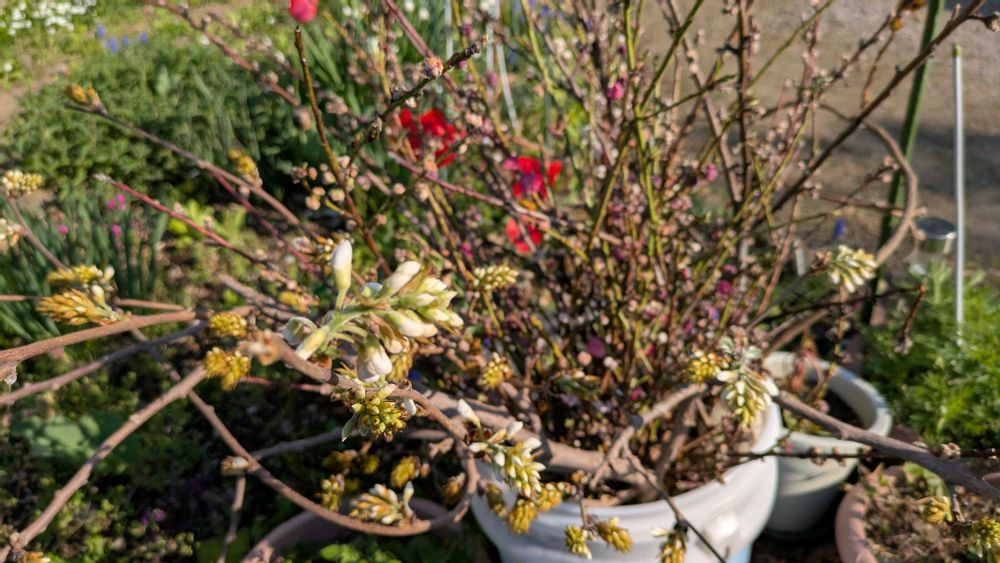 剪定した花桃や藤の花も開いて居ます