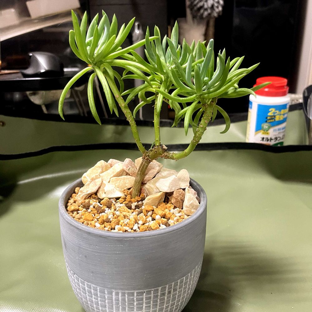 カッコイイ植物をメルカリで発見したので購入^ ^とりあえず100均の鉢に植えてみたけど…何か物足りなく感じて石を付け加えてみました!