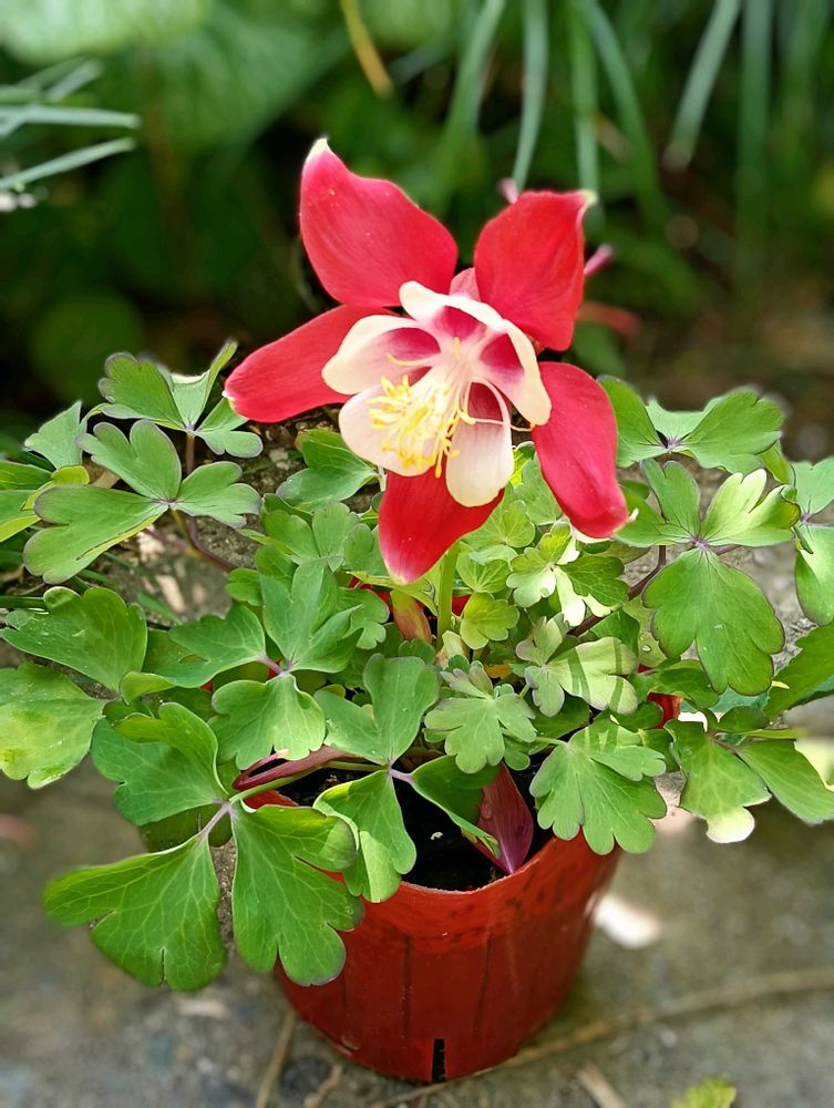 お花屋さんの前を通りかかったら…あら、素敵な色のオダマキが…😳 赤は初めてなので、この子を連れて帰ってきました😊