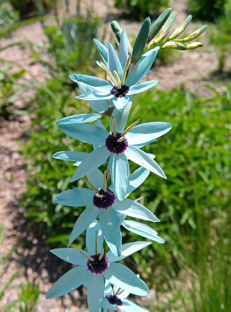 1年目は他のイキシア同様、地植えにして3球→1本。2年目は半地植えで鉢ごと土の中へ3球→3本、3年目はそのまま育てて7本咲き、で、今年は1本だけでした💦