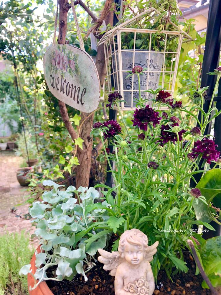 素敵なお庭ですね🍀🌹トールペイントのウエルカムボードも素敵ですね❣️