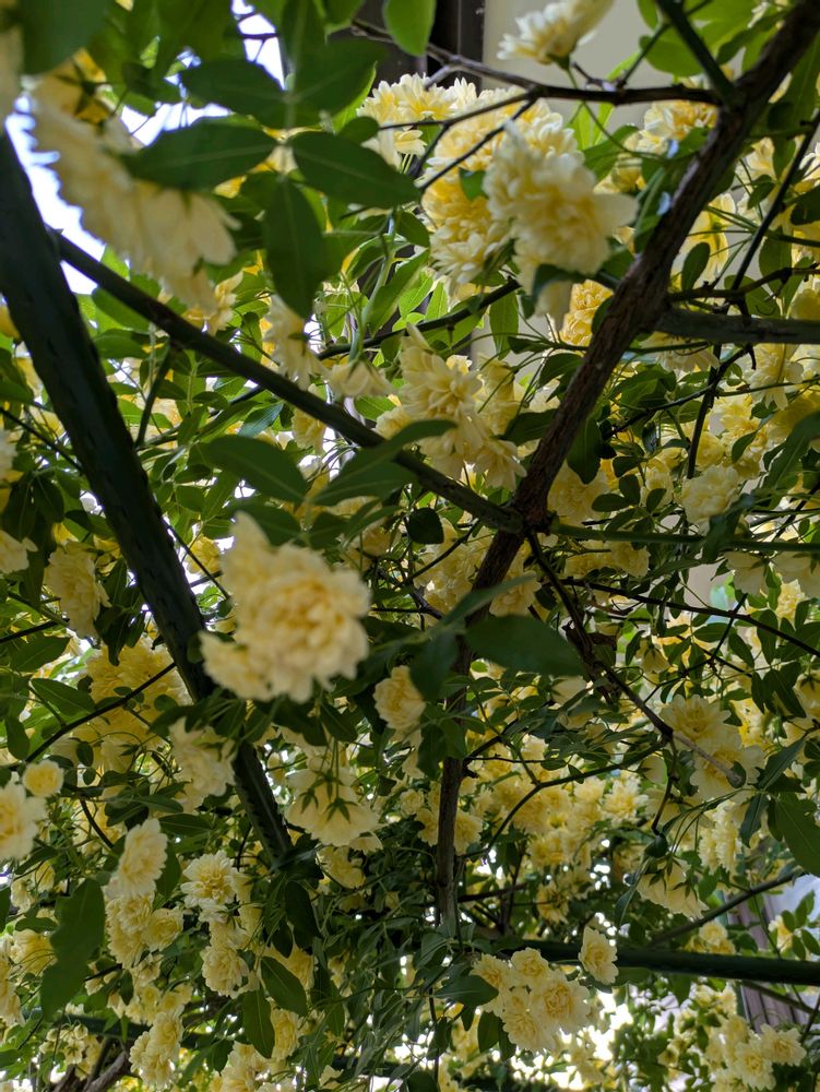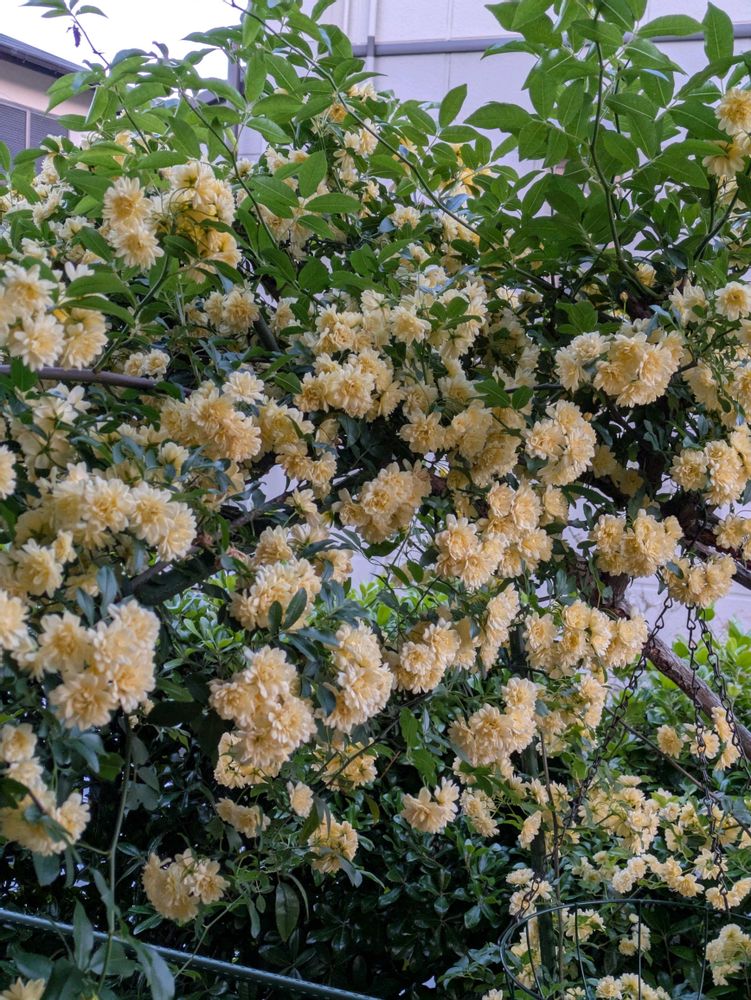 今朝のモッコウバラが綺麗なので棚の下から取ってみました😆