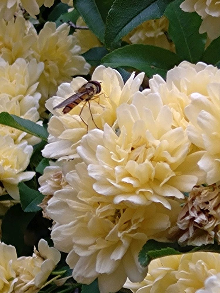 ①モッコウバラとアブ(虫が苦手な方、ごめんなさい)