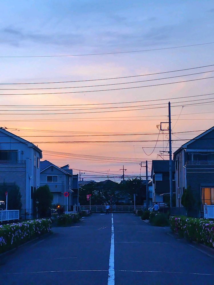 夕暮れ時の一コマ、綺麗ですね~(=^・^=)🐾🐈⬛