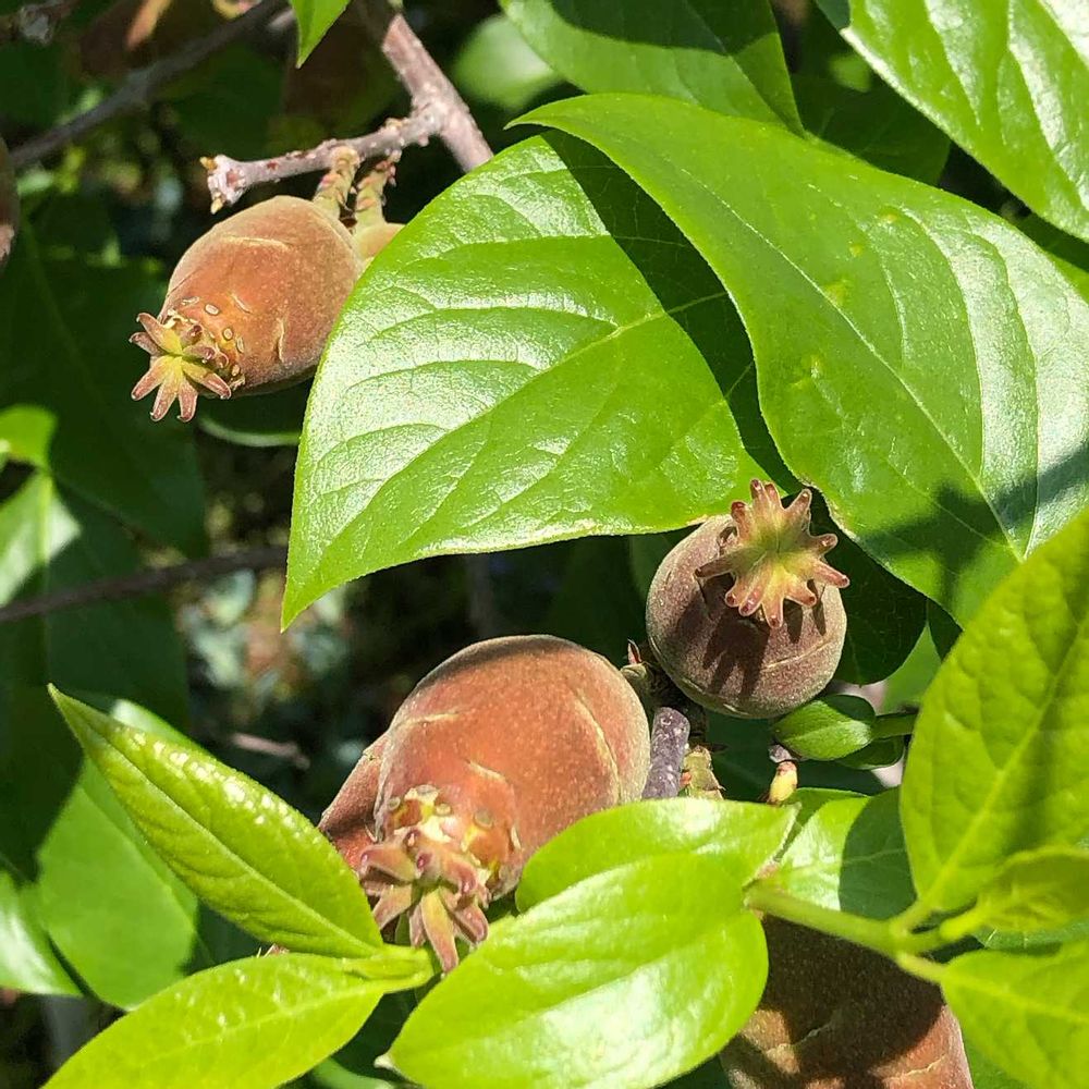 茶色の楕円形の実‥先っちょのピロピロ‥‥短足のイカみたいで面白い🤣