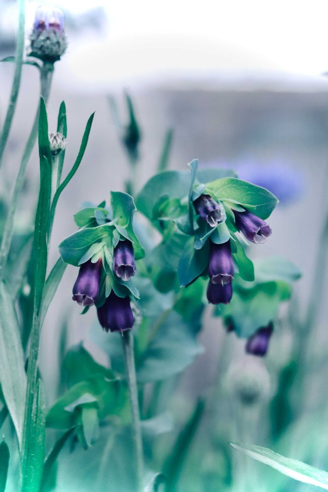 青みがかった葉も花も