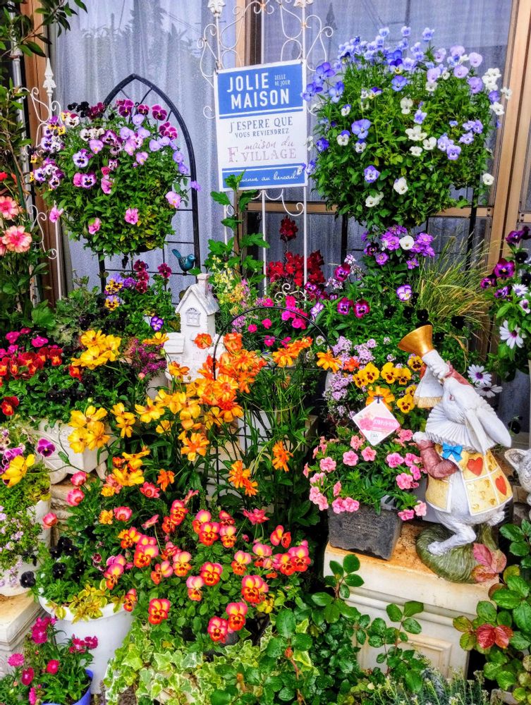 ラックスがモリモリ咲いてるのと虹色スミレが鮮やかなので綺麗に見えるのかと思います☺️
