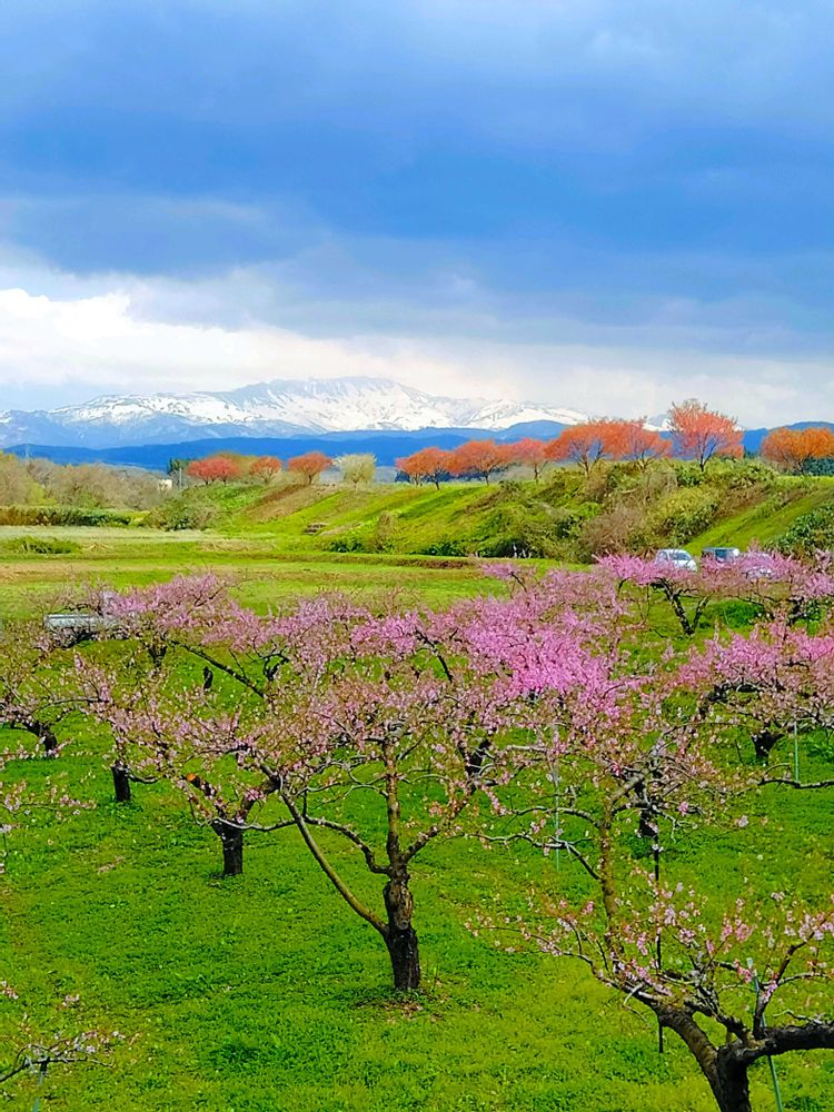綺麗な月山と、花びらが散った後の桜さんと、可愛らしい桃の花さんを一度に観れて超ラッキーでしたよ🥳