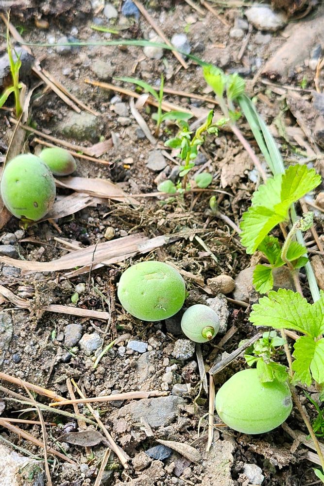 マルマルさんのキジムシロかな?キジムシロの仲間だと思います。葉っぱなど細かいところをみないとわかりません,キジムシロかも!?,落ちた梅の実の投稿画像