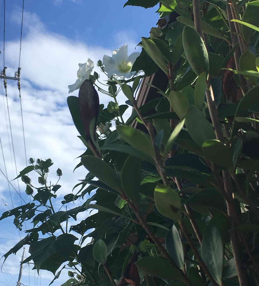青い空と雲たち。そして白いお花が妙に合っていたので思わず写す。