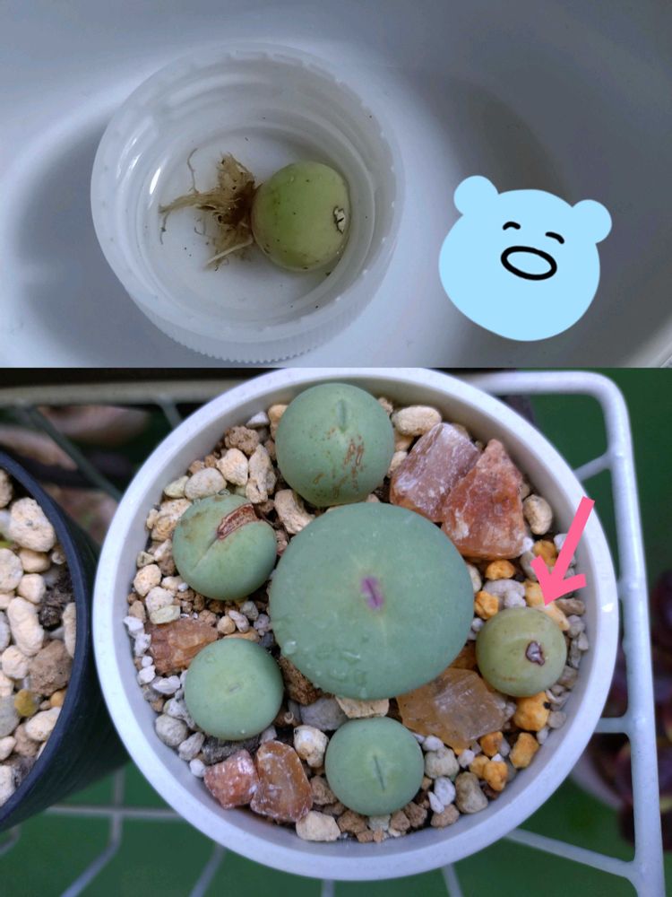 ㊦ずっと水耕栽培ってわけにはいかないので元の場所に植えました。パゲアエが大きくなって可愛いです✨️💋✨️(真ん中パゲアエ、まわりは翡翠玉)
