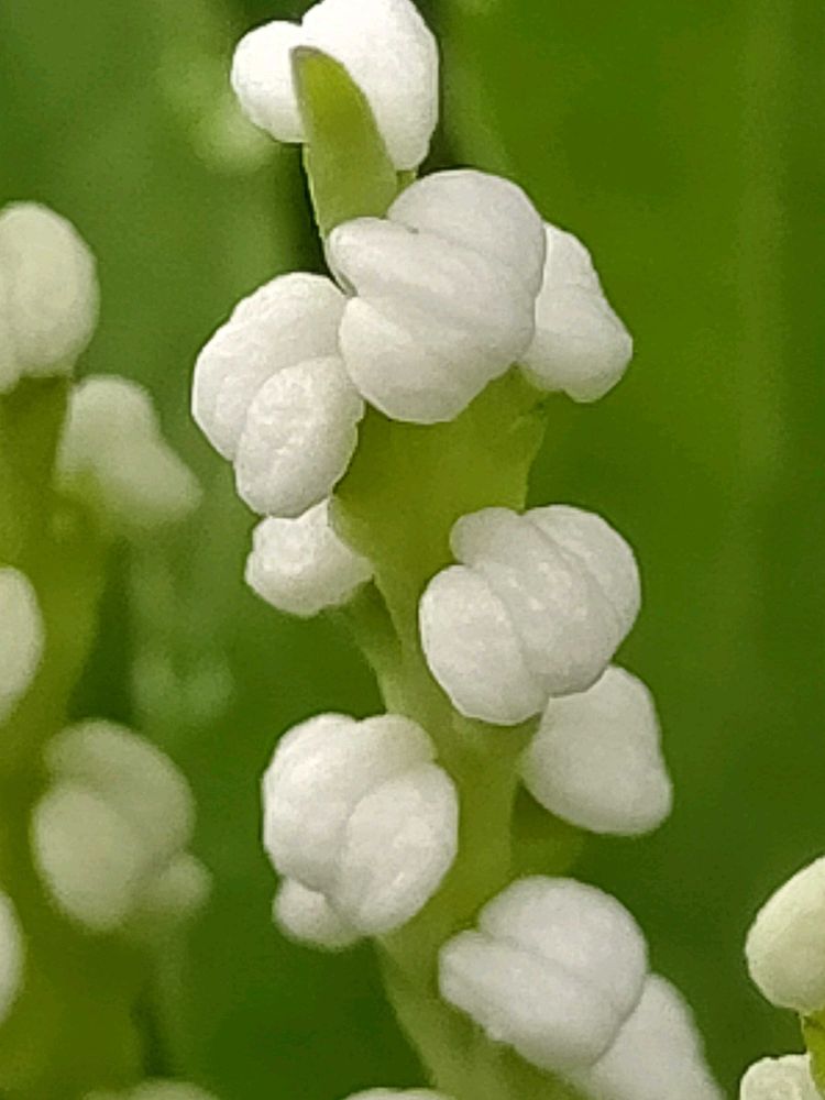 真っ白な米粒みたいな花を一茎に数個つけます。