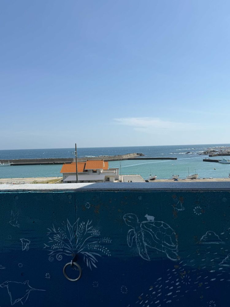 道の駅オーシャンパーク屋上の手摺り壁に描かれた海亀と海のコラボ
