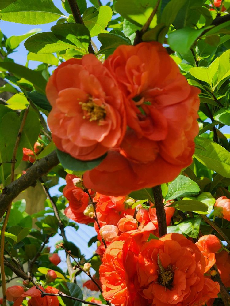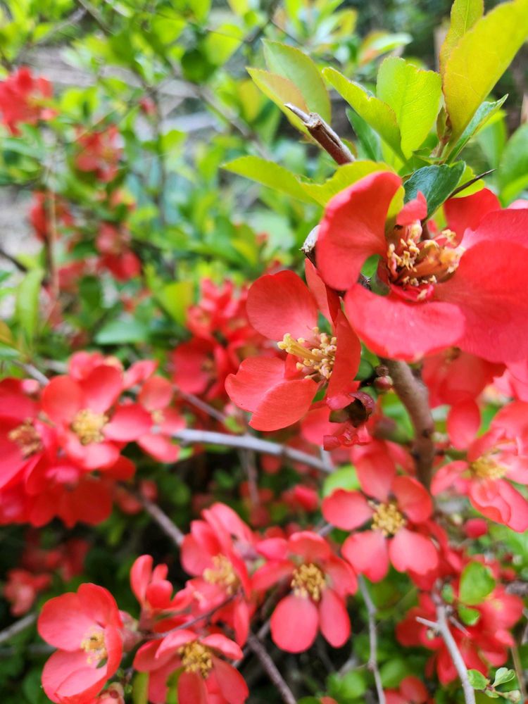 八重のボケの花🌼今年は花付きが良いです。きれいです...……💮