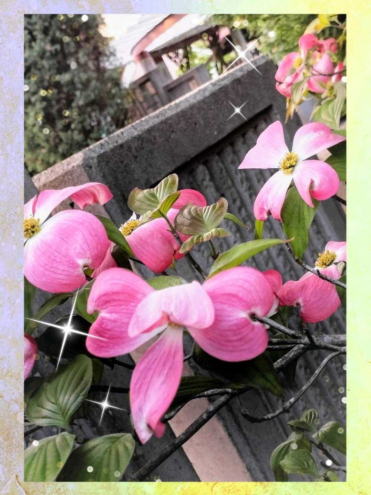 通りがかりに見掛けた〜素敵なお宅の花水木(ハナミズキ)良いお天気☀だった~けど~変なお天気☀だった~あの日〜☀てるのに☂️が降ってた~俗に言う狐の嫁入りって言うお天気☀だった~😱😫😵