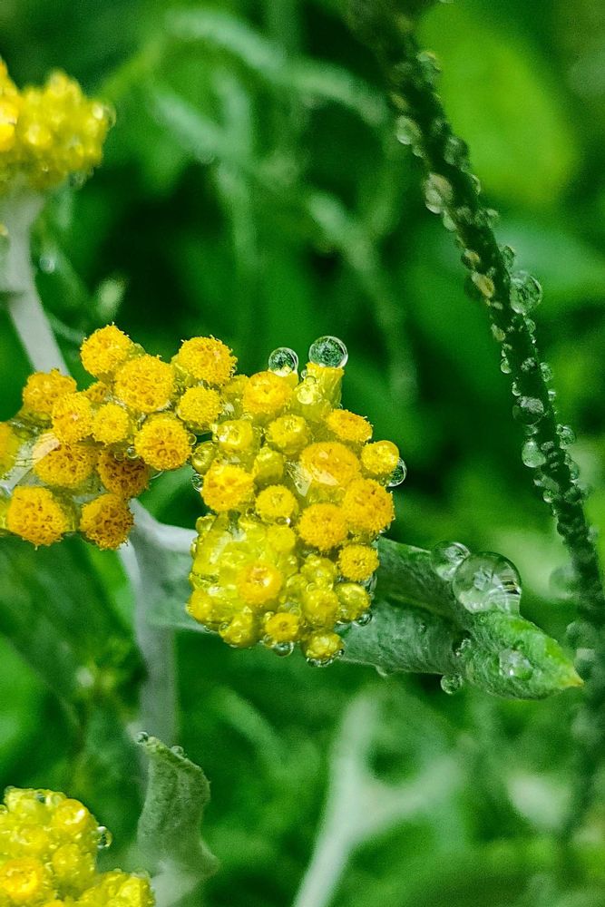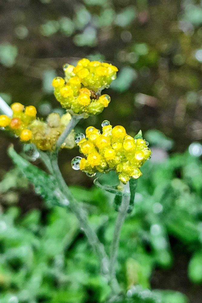 都会の裏通りにハハコグサが沢山雨粒付けていました😍