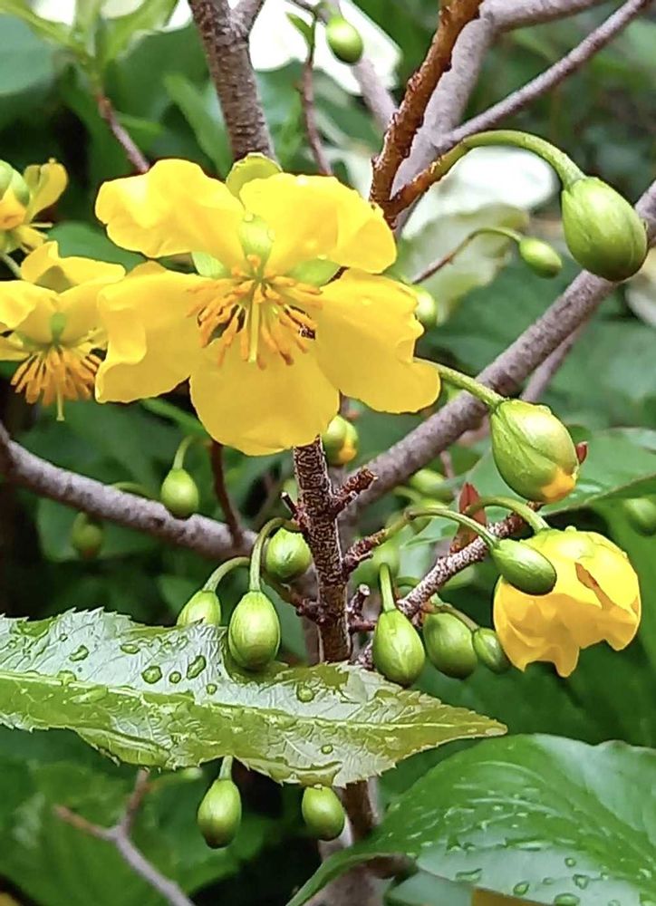 おはようございます。散歩道のミッキーマウスの木が黄色いお花をつけ始めました。