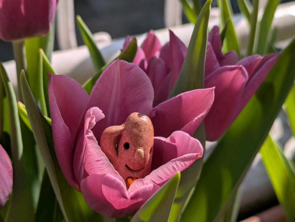 ハニワくん🌷チューリップの中でかわいい😍💕