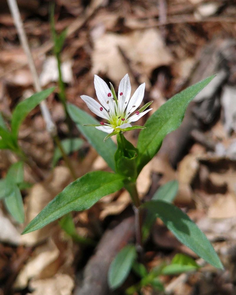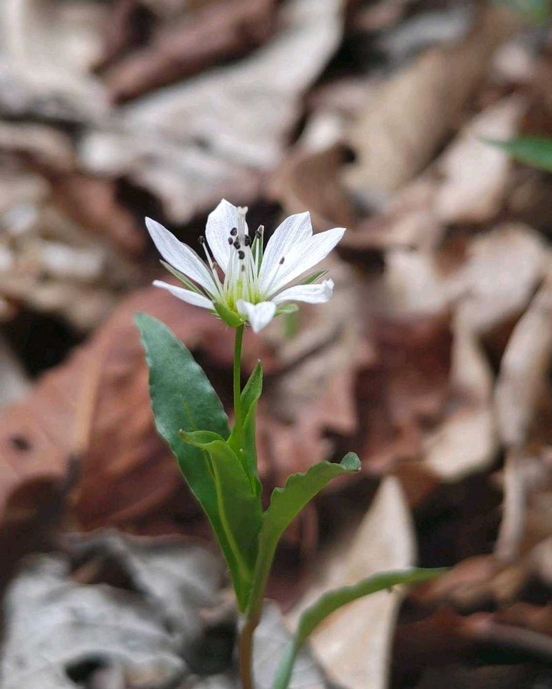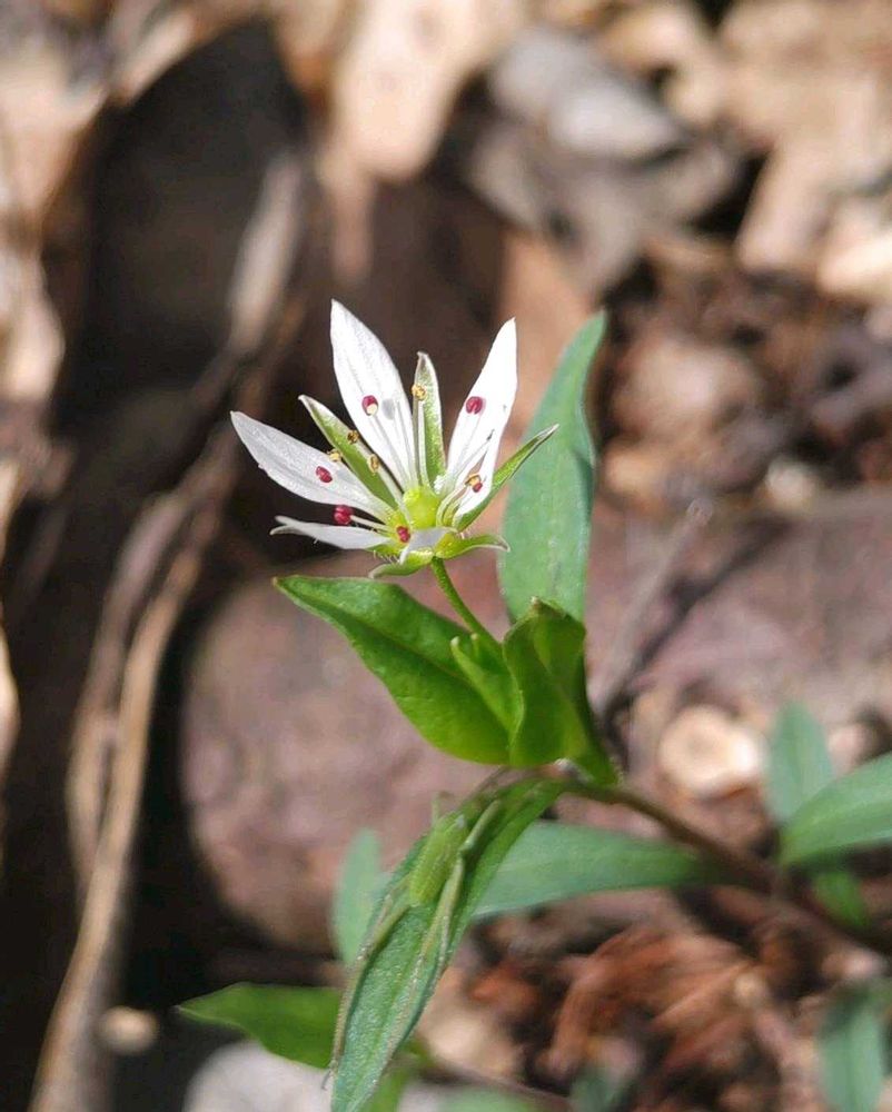 ワチガイソウに似ていますが花弁も葉も細く花弁は5〜7枚で、5枚のワチガイソウと識別できます。