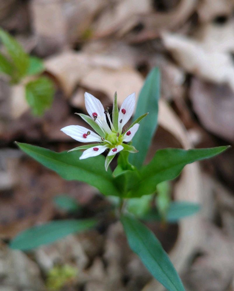 繊細な白い花びらに赤い葯がとってもステキなヒゲネワチガイソウ🤍💕🌿