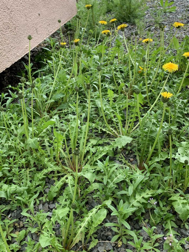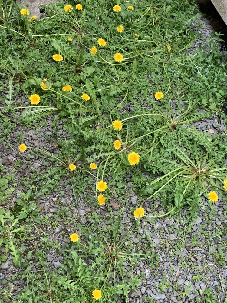 ちょっと日当たりの良くない場所が日本タンポポの群生地になっているので、お日様を求めて茎がぐんぐん伸びて毎年こんな具合に(⌒-⌒; )