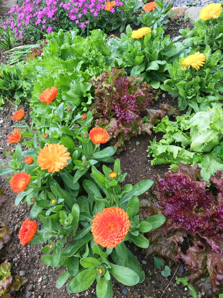 キンセンカ💛の隣にはレタス🥬