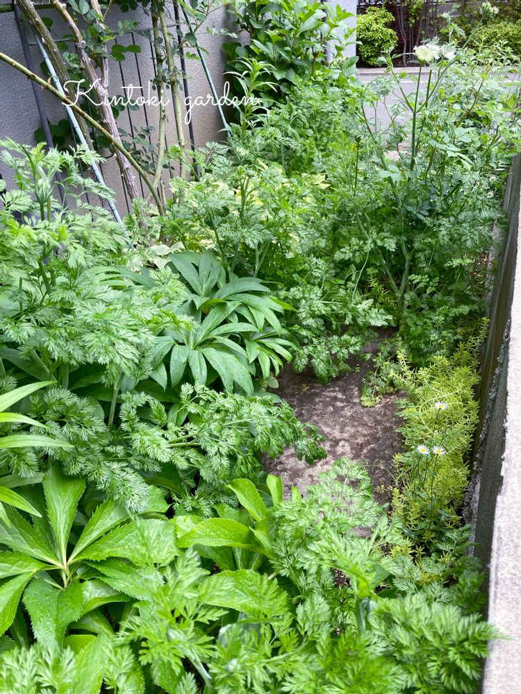 今年の東側の庭はオルレアホワイトレースが占領大株になって踏み石を隠してしまう程群生しているので、だいぶ抜いてはいるのだけどまだまだ整理🧹しないとジャングル状態だwー。