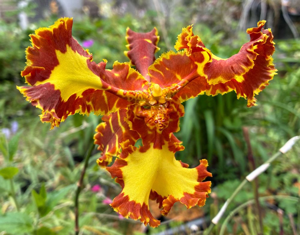 ひらひらの沢山ある花びらとオレンジと茶色の色合いの花が不思議な魅力を出してますね🥰