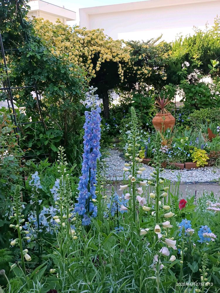 苗で買ったエラータム系のデルフィニウムが中心に咲いてきました️️️🩵