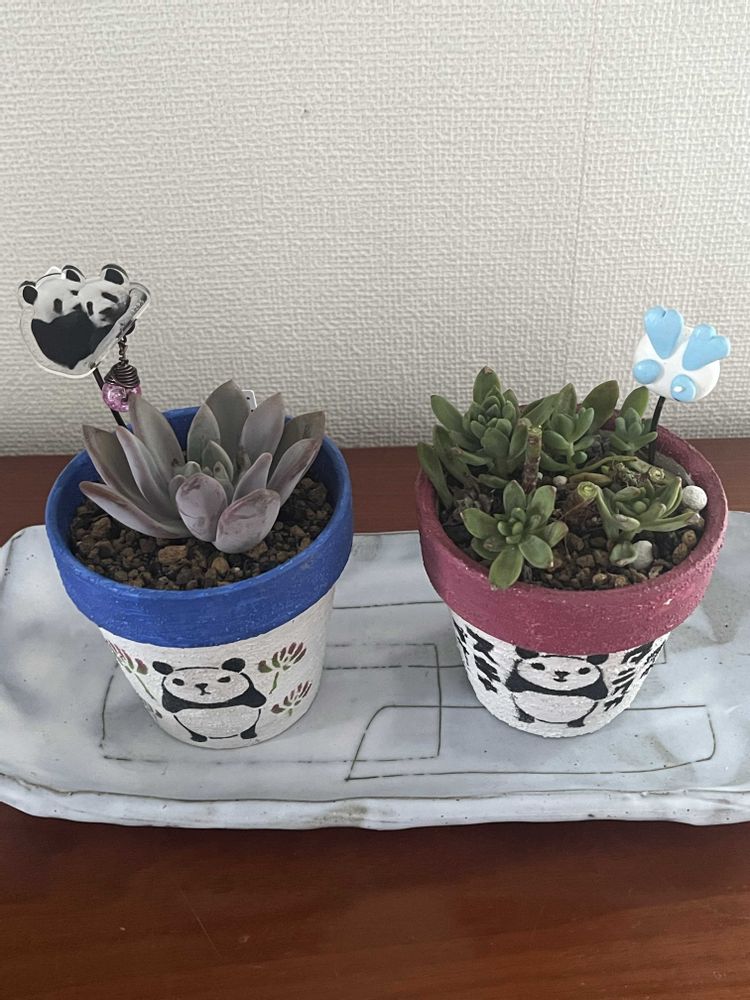 あっ。今日はパンダの日でしたね♡パンダの鉢とパンダのリメ缶可愛い🐼