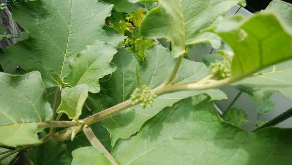 なすのとなりに一メートルくらいの🌿が生えてます。蕾らしきもの発見。野菜でしょうか、教えて下さい