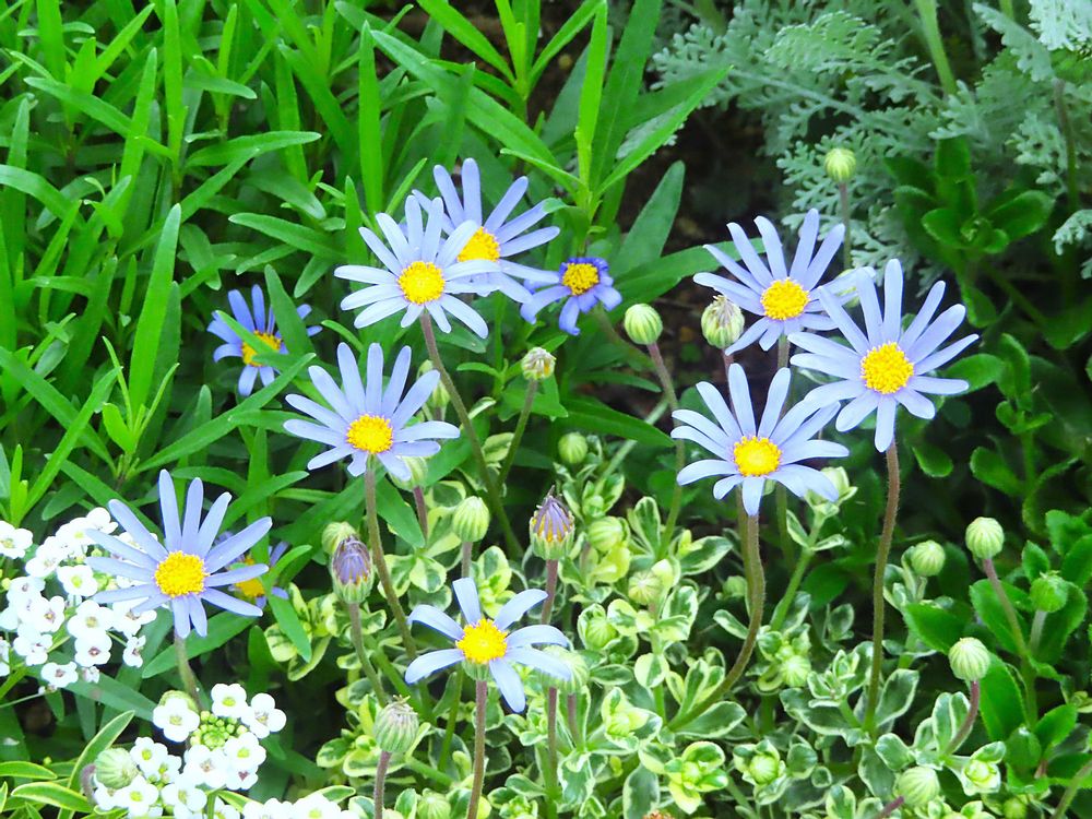 白・赤・ピンク・黄色・紫のお花が多い中で「ブルーデージー」の青が新鮮でした。 パチリ