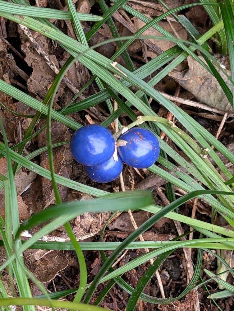 こんにちは😉沢から池に引いている水道管整備していてリュウノヒゲの実がありました😁