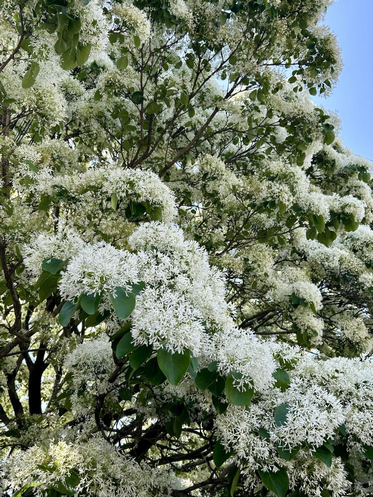 世田谷の閑静な住宅街に見上げるほどのもふもふふわふわ、ナンジャモンジャの大木😍