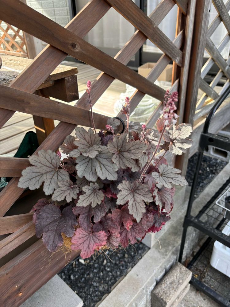 昨夏に屋根のある少し日陰のウッドデッキに設置、🐸が住み着き秋に植え替えが出来なかった💦小さいハンギングでそのまま頑張って🤣