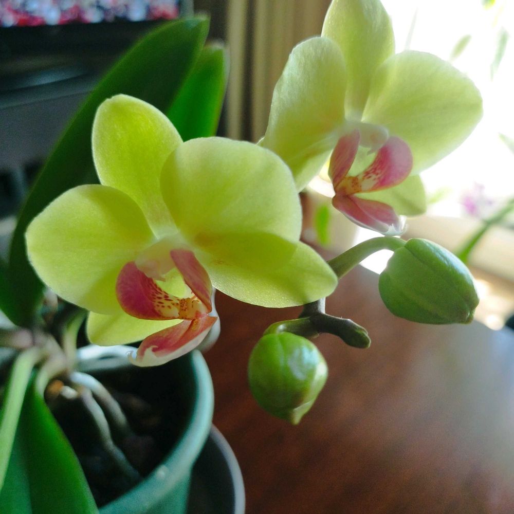 グリーンの胡蝶蘭綺麗ですね 全部咲かなくても見たいですね〜😅🎶🎶🎶