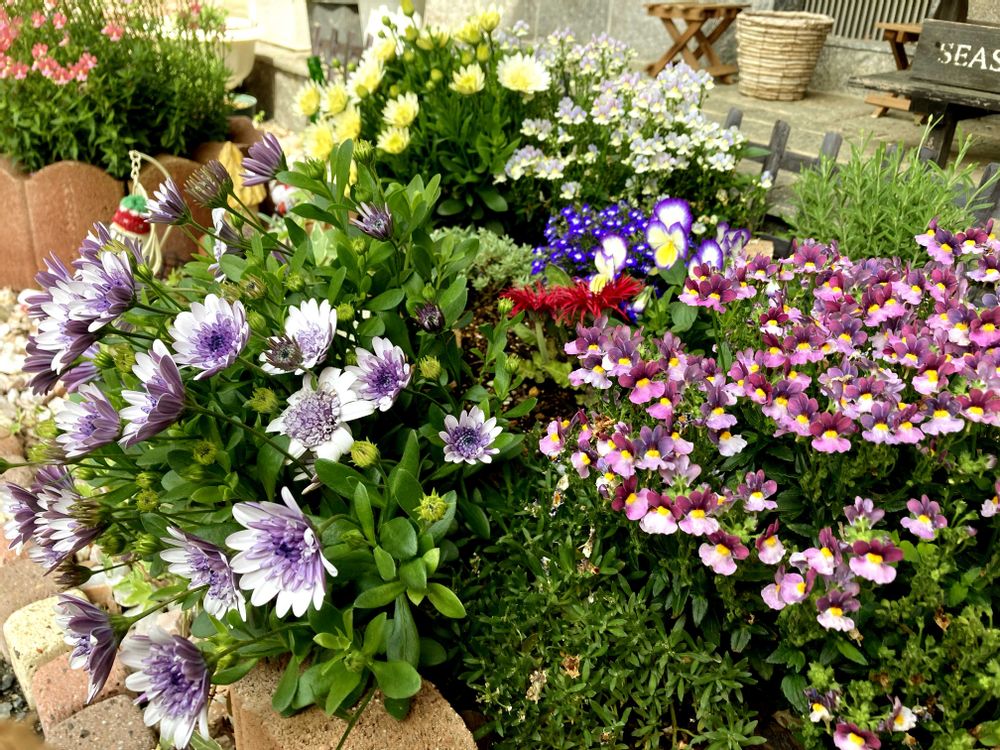 花壇も綺麗にさかせてますね❤️🌿🩵🌿💜🌿