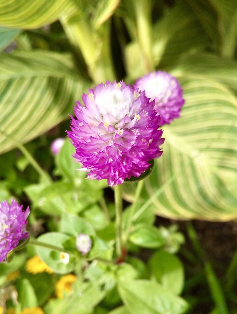 今日のお花「シロツメクサ」の新種💴かなと思いましたが、ピンク色の「センニチコウ(千日紅)」のようです。📸🩷🌿😄🌞