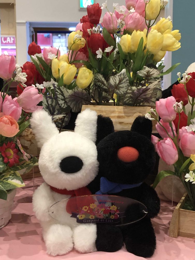 今日は曇りですが、Gaspard et Lisaはお花を見てパッとサイネリアです。🐰🐶🤗✌️