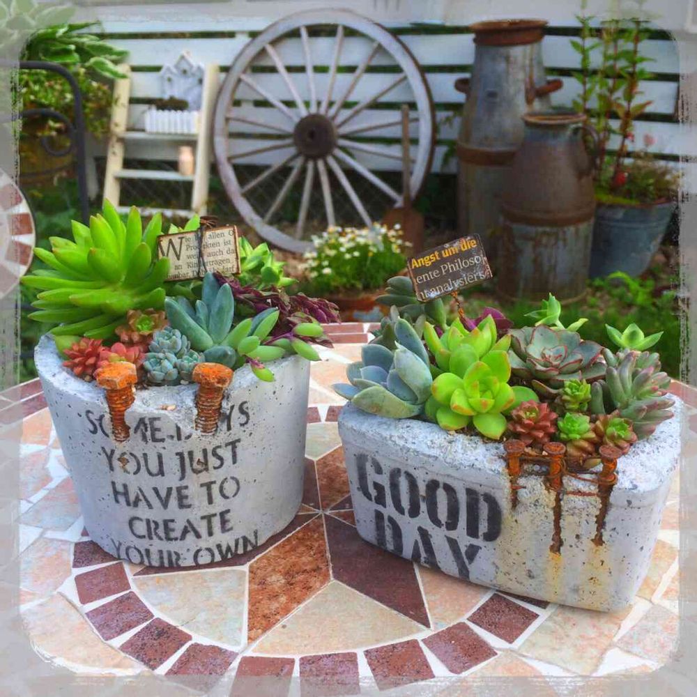 ikuraさんのコンクリ鉢♡*゜器が良いから私の寄せ植えでも素敵すぎる( ૢ⁼̴̤̆ ꇴ ⁼̴̤̆ ૢ)~ෆ笑