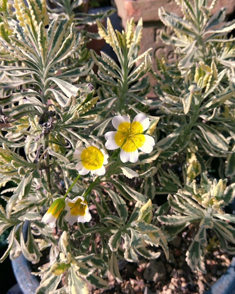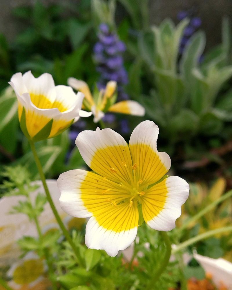 ③ ④ラベンダー🪻メルロー冬越し出来ました🙆 こぼれ種で咲いたリムナンテスを添えてみましたょ~🧚♂