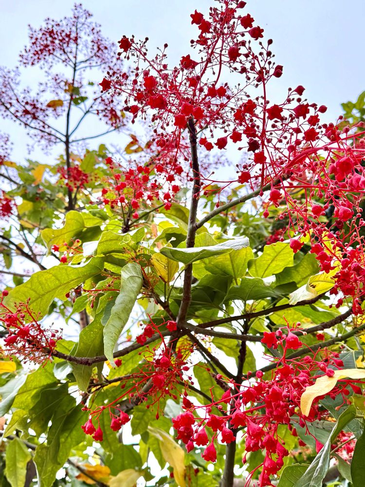 花茎も赤いので遠くから見ると木が真っ赤に見えます❣️