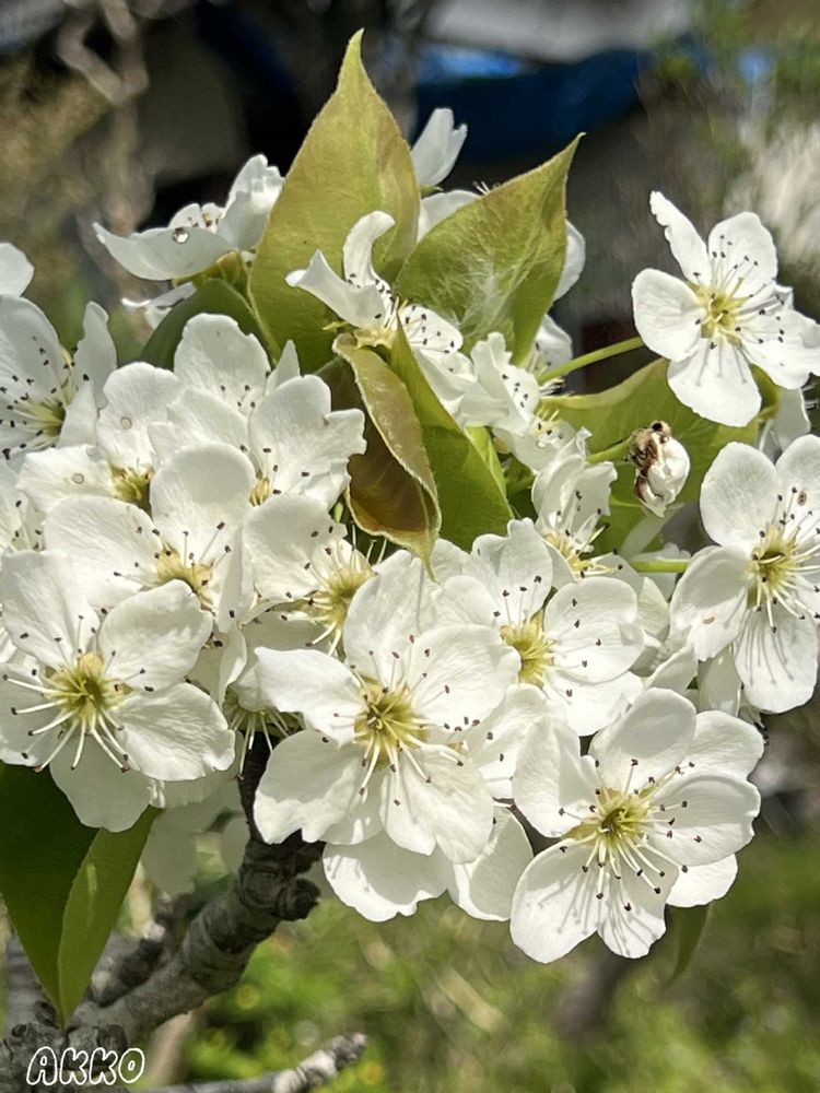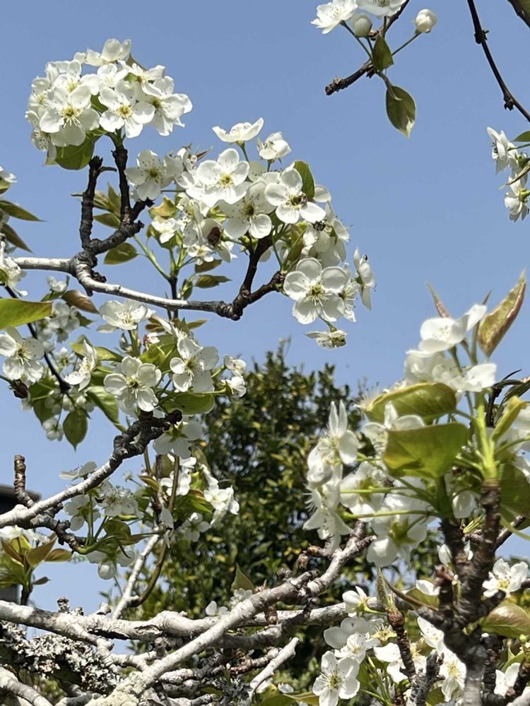 梨の花、きれいですね〜と言うよりも、美味しそうと言える日が楽しみでしょうね😊